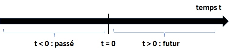 Il faut ensuite repérer les événements dans le temps afin d’établir une chronologie. Pour cela il faut choisir un moyen de mesure de l’écoulement du temps (horloge) ainsi qu’un point d’origine, correspondant à t=0. Les temps négatifs correspondront à des évènements antérieurs à l’origine :